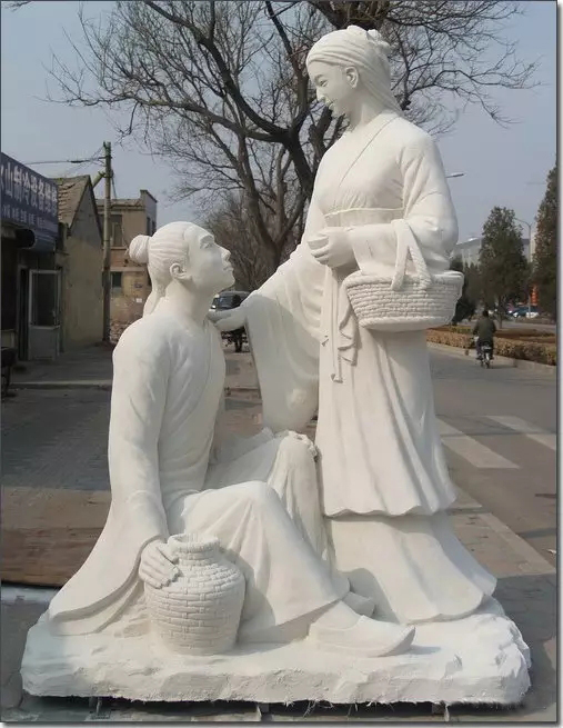 其實(shí)我更喜歡制作成功的玻璃鋼雕塑作品,漂母的優(yōu)雅婉約,嫻靜恬淡,眼神中的憐惜與鼓勵(lì),都在一顰一笑一個(gè)衣褶一個(gè)提動(dòng)態(tài)中體現(xiàn),仿真石材的效果讓韓信的體態(tài)更顯堅(jiān)實(shí),所說是落難英雄,看到韓信仰望漂母的感覺,感恩之心悠然而生,或許這就是此雕塑所表現(xiàn)的真實(shí)意義吧。漂母韓信玻璃鋼雕塑最終的安放地點(diǎn)是淮安的一所中學(xué),仰望古人,心懷感恩,后世不忘前世之師,念卻先閑展望未來,懷古論今繼往開來。