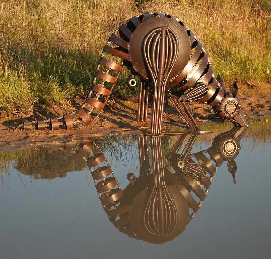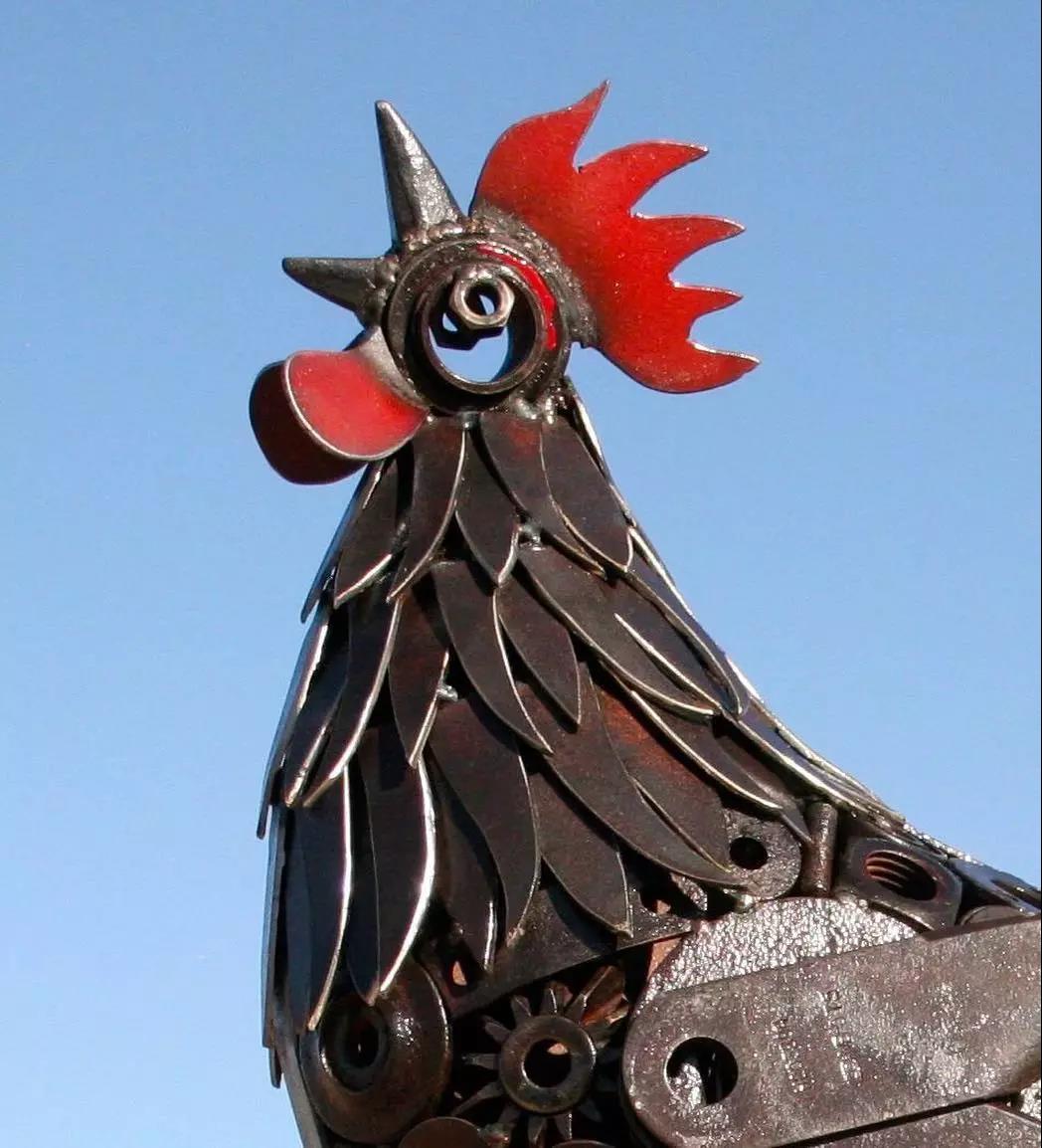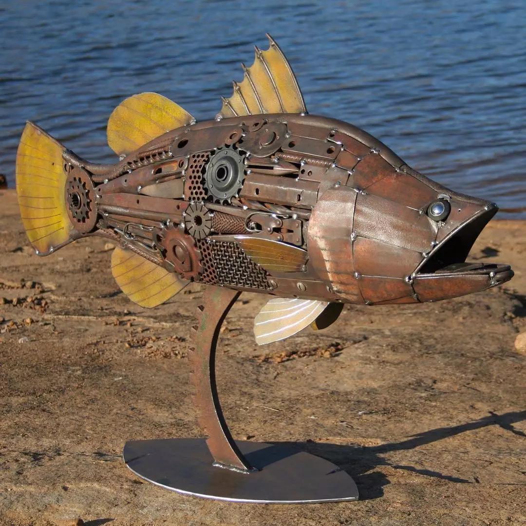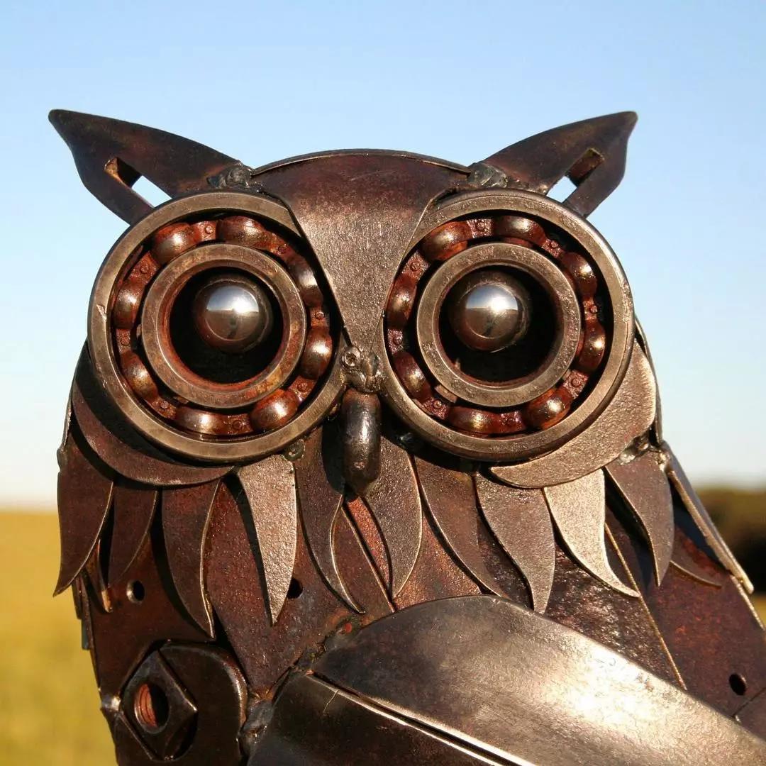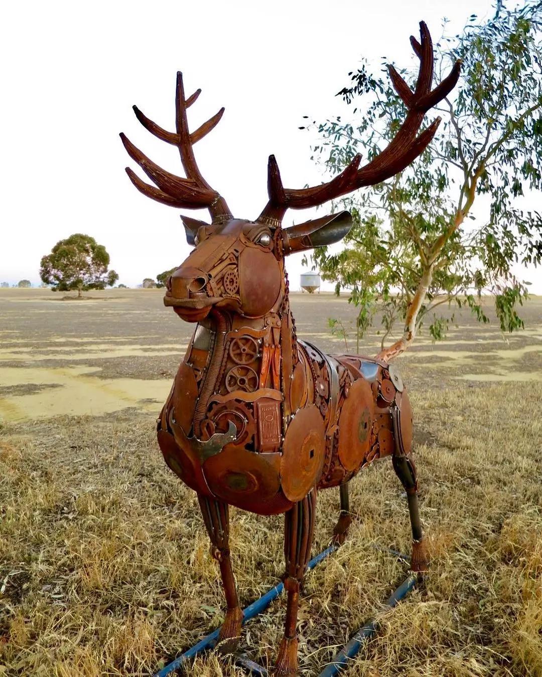 他在舊機器和廢金屬垃圾堆中扒出了可用的再生金屬,創作了這些雕塑作品。