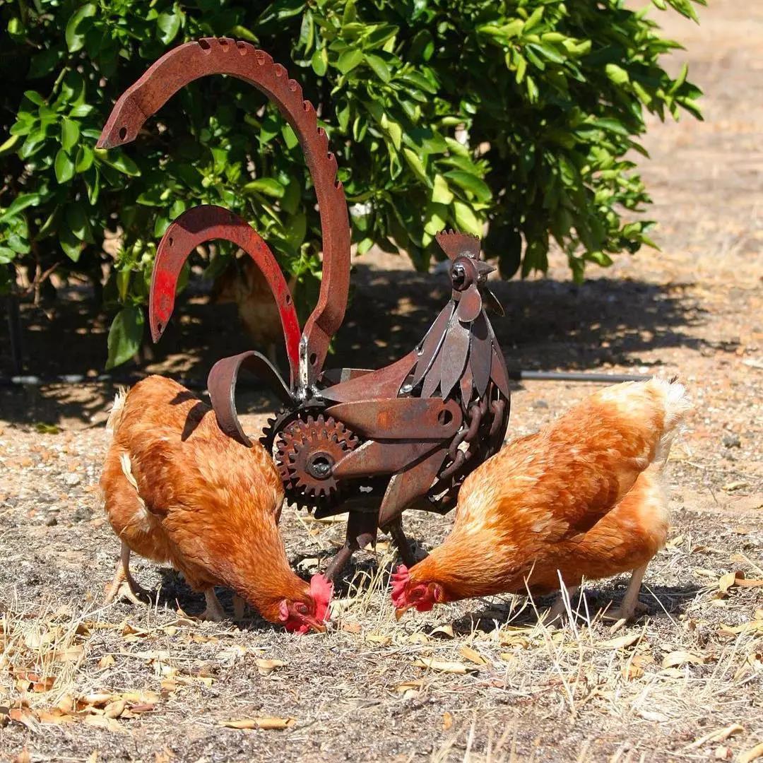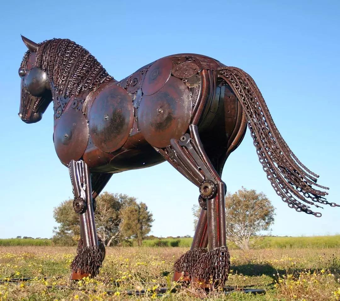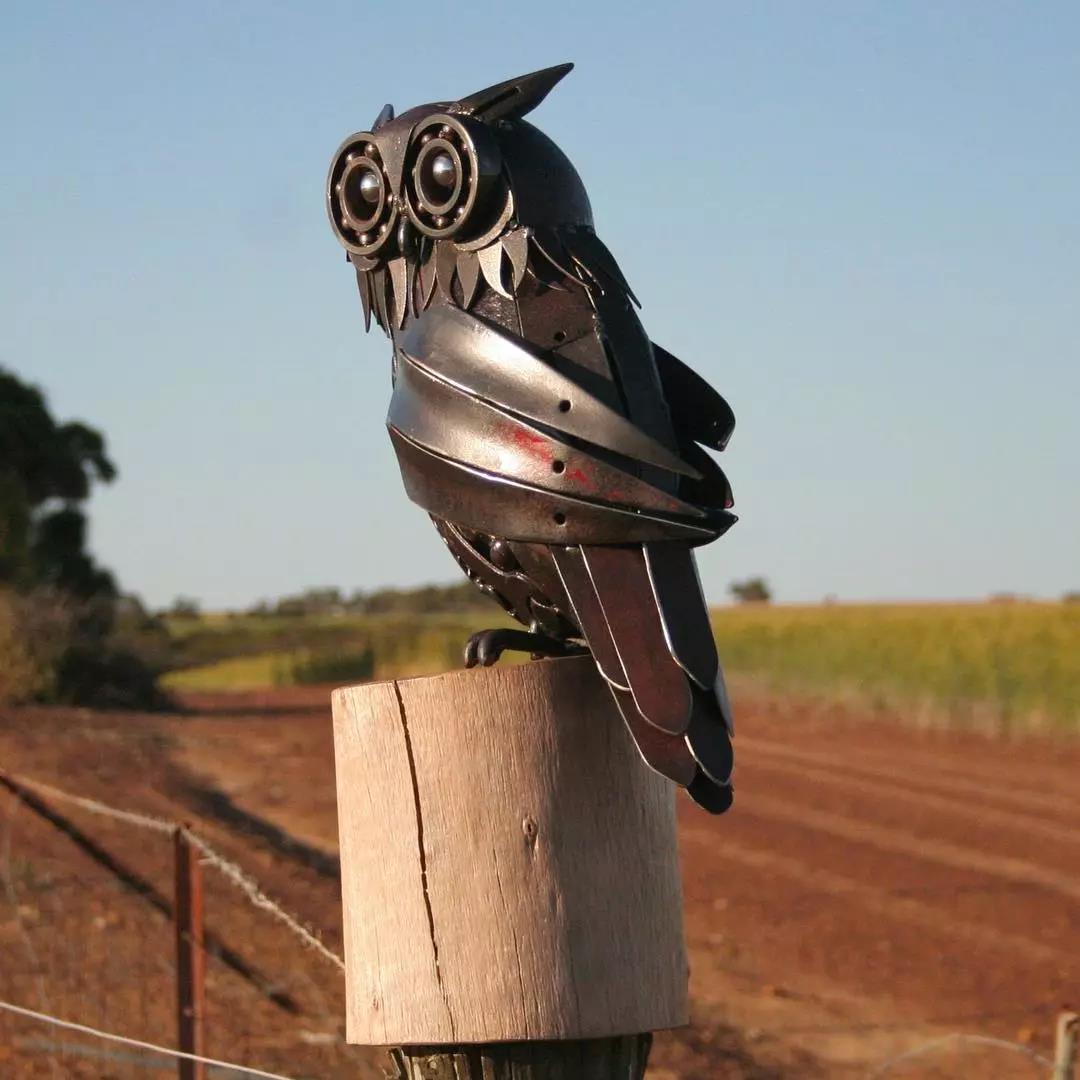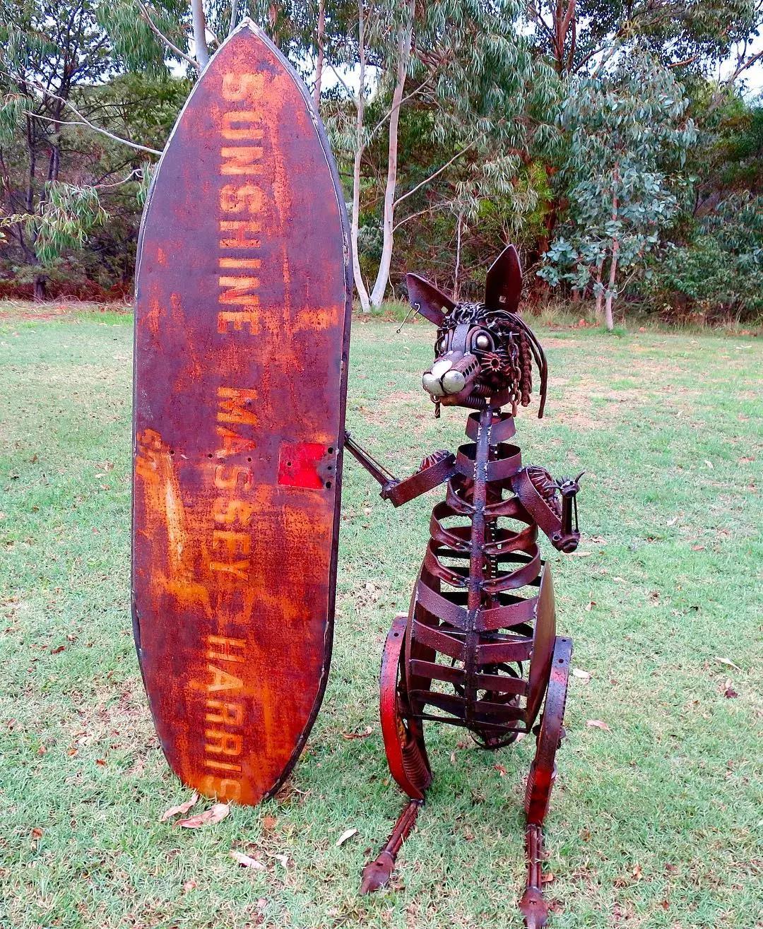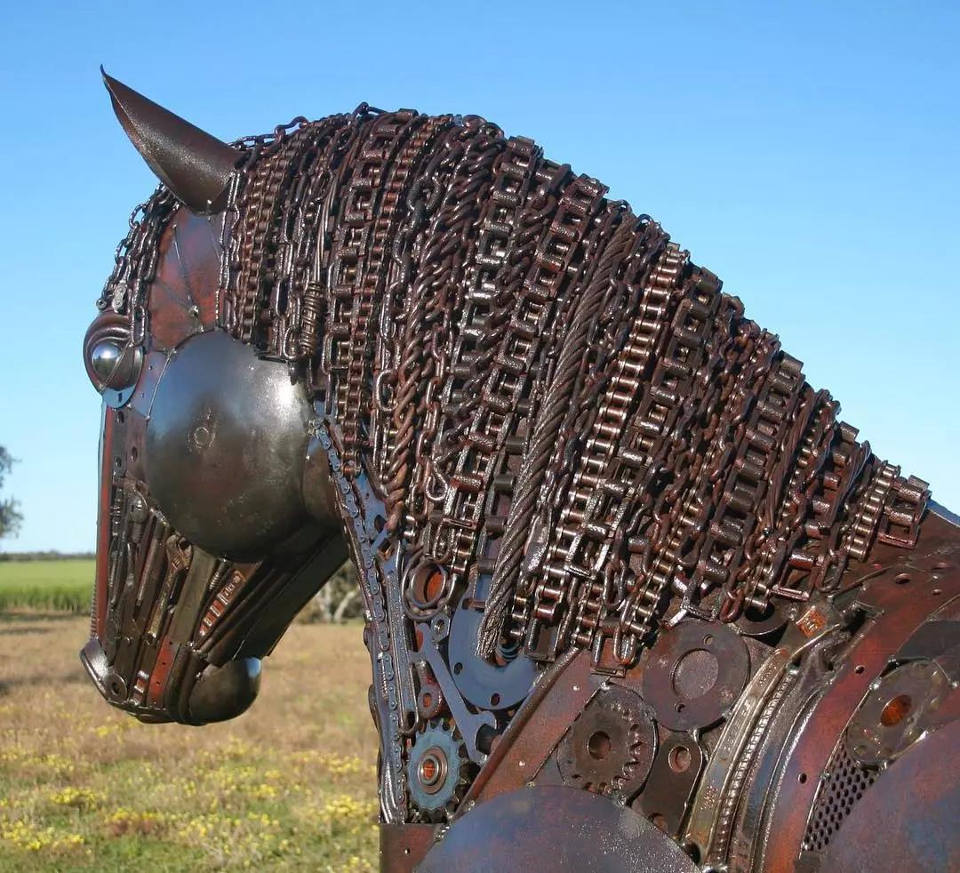 他在舊機器和廢金屬垃圾堆中扒出了可用的再生金屬,創作了這些雕塑作品。