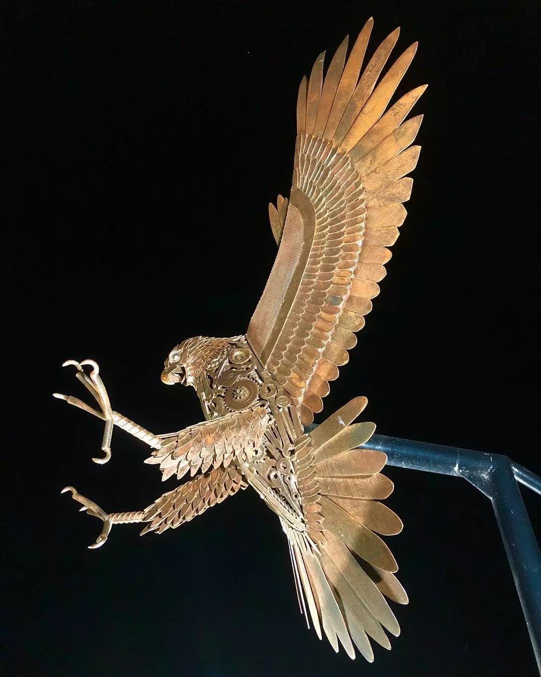 他用錯綜復雜的生銹部件,致敬這些宏偉的動物們。纖細的羽毛、驚人的毛皮質感、復雜的肌肉,給予他們力量和速度。