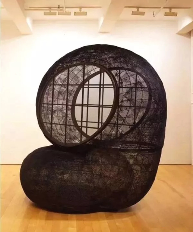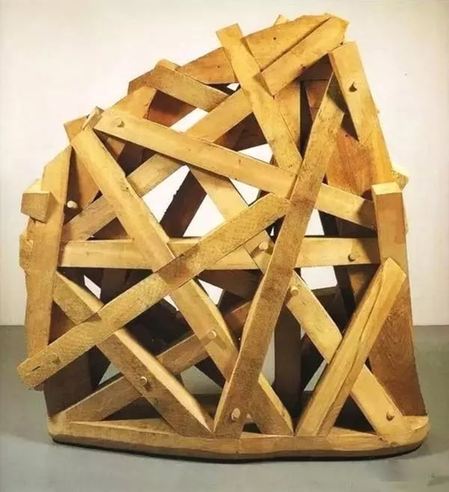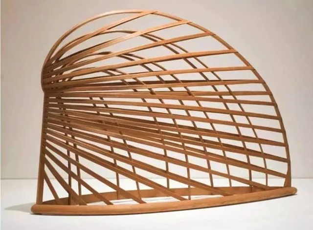 普耶爾首先引起人們注意的一件作品是1985年的鋼木雕塑《魔咒》(The pell)。我們震驚于作品的曲線之美、圓錐的優雅尖細,以及矩形開口的變化多樣;平板木條擁有細細的條紋,其充實的質感讓“木條”看起來像是一個籃子。對編制籃子的影射暗示手工藝和匠人,進而暗示了人的存在。我們可以感受到這件物品是由手工精心制造,我們還能感到普耶爾的藝術背景不僅僅來自非洲,雖然他可能曾在那里見到過手工精湛的器皿和儀式用木器;他的藝術靈感還來源于瑞典,因為他曾在那里學習過木工;此外還有日本,那里具有制作功能性和裝飾性木器的悠久傳統。然而,僅僅由于普耶爾是一名美國黑人,就認定其藝術參照了非洲藝術的說法本身就是個錯誤。他的雕塑與民族身份和政治無關,只是反映出作者在多種文化中的廣泛體驗。通過以木材作為藝術媒介的方式,他得以將這些體驗熟練、完美地表達出來。
