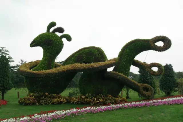 看過美國電影《剪刀手愛德華》的觀眾,一定還記得這樣一些鏡頭:花園中,一株株綠樹在機器人愛德華的修剪下頓成各種神形兼備、異趣橫生的綠色動物雕塑,嬉戲的猴子、游動盤桓的巨蟒、開屏的孔雀、爬行的恐龍、轉動脖子的長頸鹿……這些匠心獨具的綠色雕塑作品,令人們眼界一新,嘖嘖稱贊。